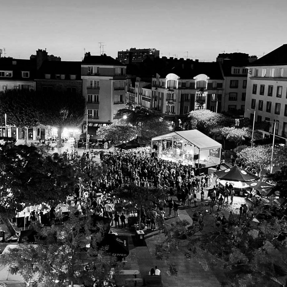 La scène est partagée avec les enseignes voisines de la place, et un barnum commun accueille les festivaliers : esprit collectif, confort et fluidité de service.